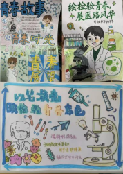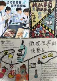 一张张海报作品主题鲜明、创意十足:有的以细腻笔触勾勒显微镜下的探索场景,展现检验学习的严谨务实;有的用活泼色彩描绘课堂互动与实验协作的温暖瞬间,定格青春里的同窗情谊;还有的通过创意设计勾勒未来职场图景,传递对检验事业的无限憧憬。显微镜下的专注眼眸、试剂管旁的默契协作、实验室里的青春回响——这些医学检验人独有的成长印记,在同学们的画笔之下绽放出别样的光彩。
